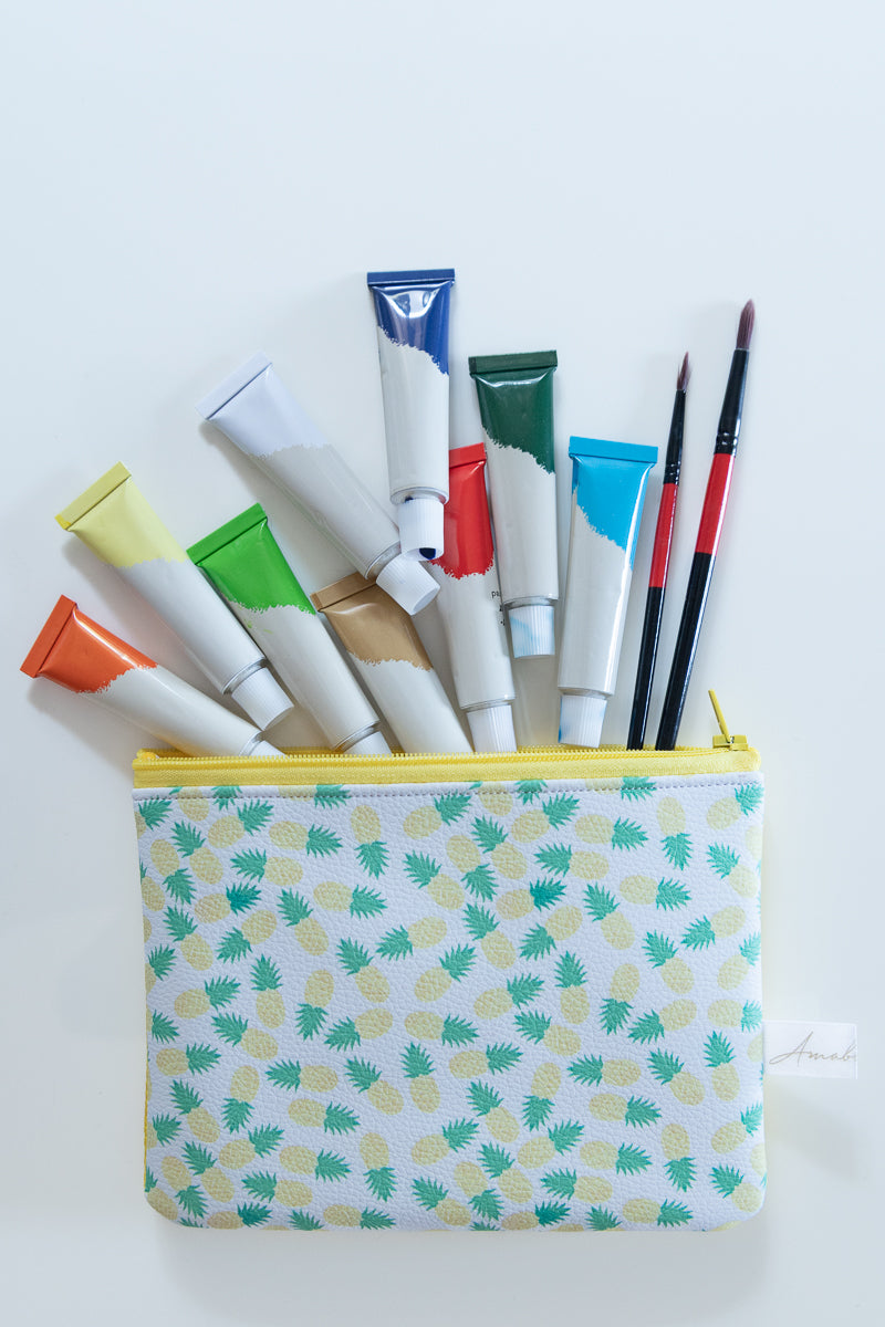 Astuccio per matite fatto a mano, perfetto anche come astuccio/trousse per cosmetici Esterno: tessuto 100% finta pelle Interna: Tessuto 100% cotone.