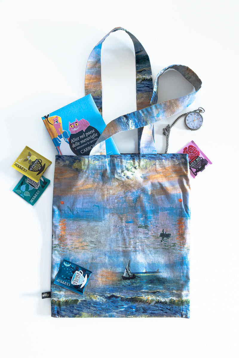 ✨Porta con te un capolavoro impressionista con questa elegante borsa ispirata a Monet! Il celebre dipinto Soleil levant prende vita su questa tote bag artistica, perfetta per gli amanti dell'arte e della moda.