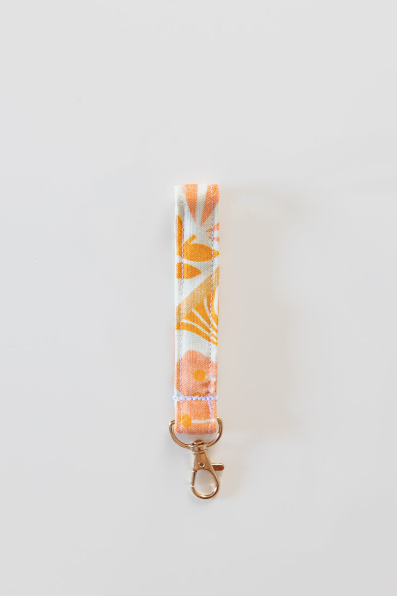 Portachiavi in cotone bianco con fiori arancioni e rosa. Il piccolo regalo perfetto come portachiavi o anche come gioiello da borsetta, chiavetta USB... Misura 11 cm (senza anello).