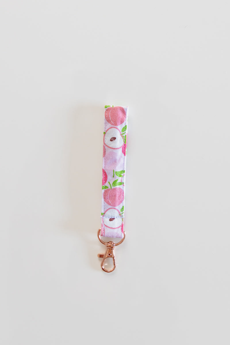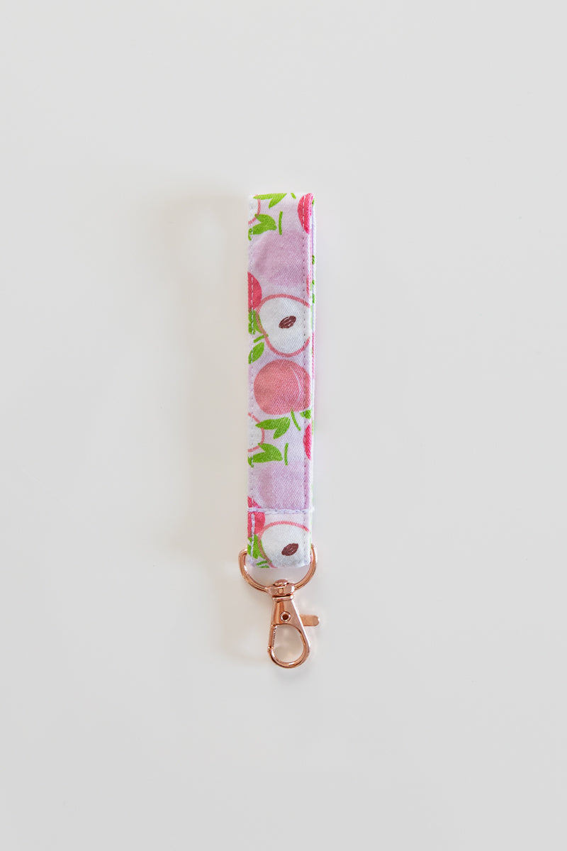 Portachiavi in cotone realizzati a mano, con all'interno una striscia di termoadesivo per una maggiore rigidità.