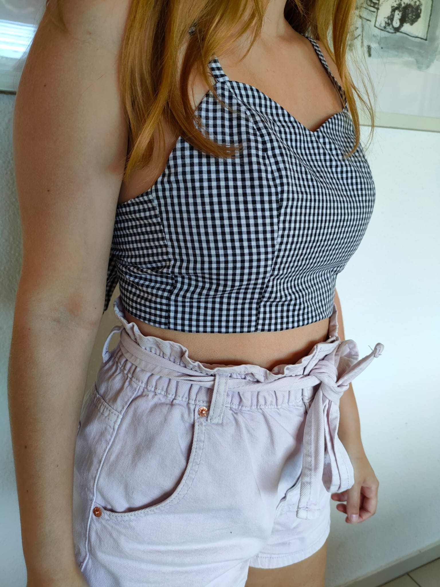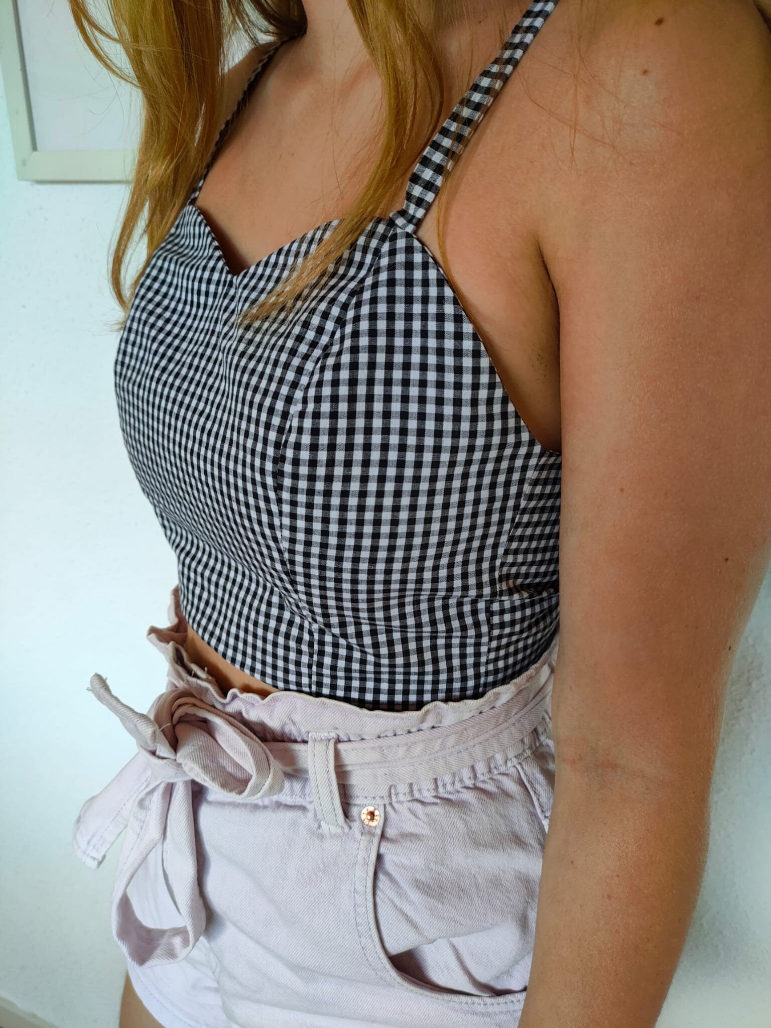🌿 Realizzato in tessuto di cotone bianco e nero a quadretti, questo top è una ventata di aria fresca e di ispirazione vintage.