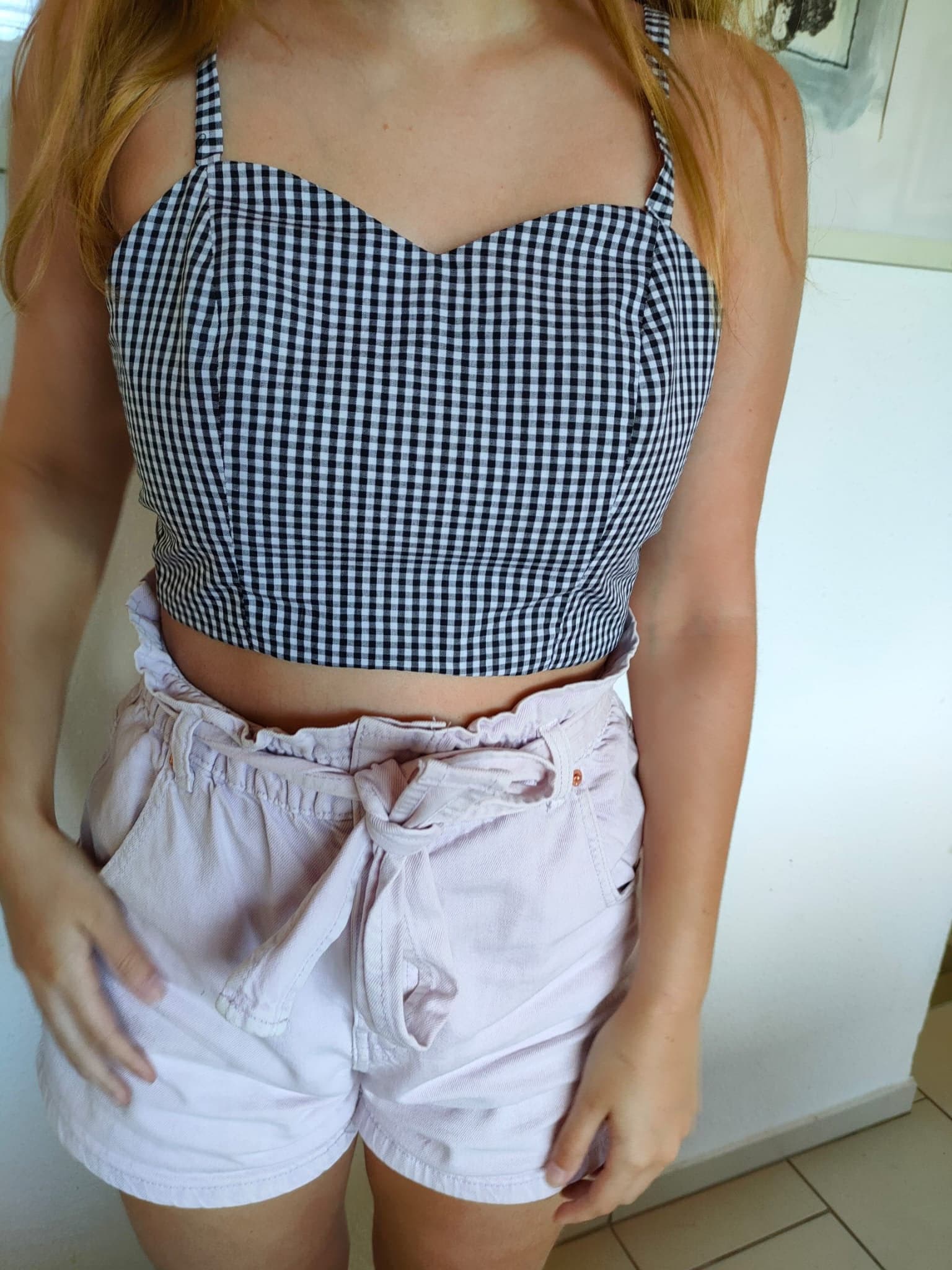 Top regolabile a quadri bianco e nero